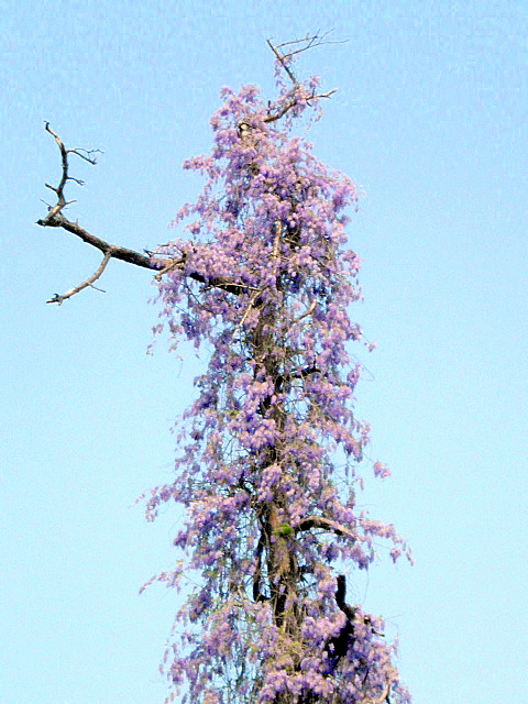 This tree does appear to be a dead one and makes an attractive sculpture with the Wisteria vine...